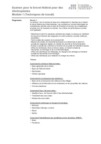 Examen pour le brevet fédéral pour des électroplastes Module 1 (Techniques de travail) , Programme Module 1 Le module 1 est le module de base de la préparation à l'examen pour obtenir le brevet…