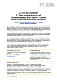 Cours de formation à l'examen professionnel d'électroplaste avec brevet fédéral (Début de la formation en février 2024, examen final en été 2027) Un perfectionnement professionnel axé sur la pratique…