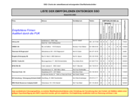 SSO: Charta der umweltbewusst entsorgenden Oberflächentechniker LISTE DER EMPFOHLENEN ENTSORGER SSO Stand 20.3.2023 EMPFOHLEN SSO als Weiterleitung an Dritte Monoschlamm-Anlage Verwerter …
