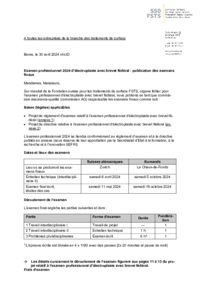 A toutes les entreprises de la branche des traitements de surface Berne, le 30 avril 2024 nh/JD Examen professionnel 2024 d’électroplaste avec brevet fédéral : publication des examens finaux…